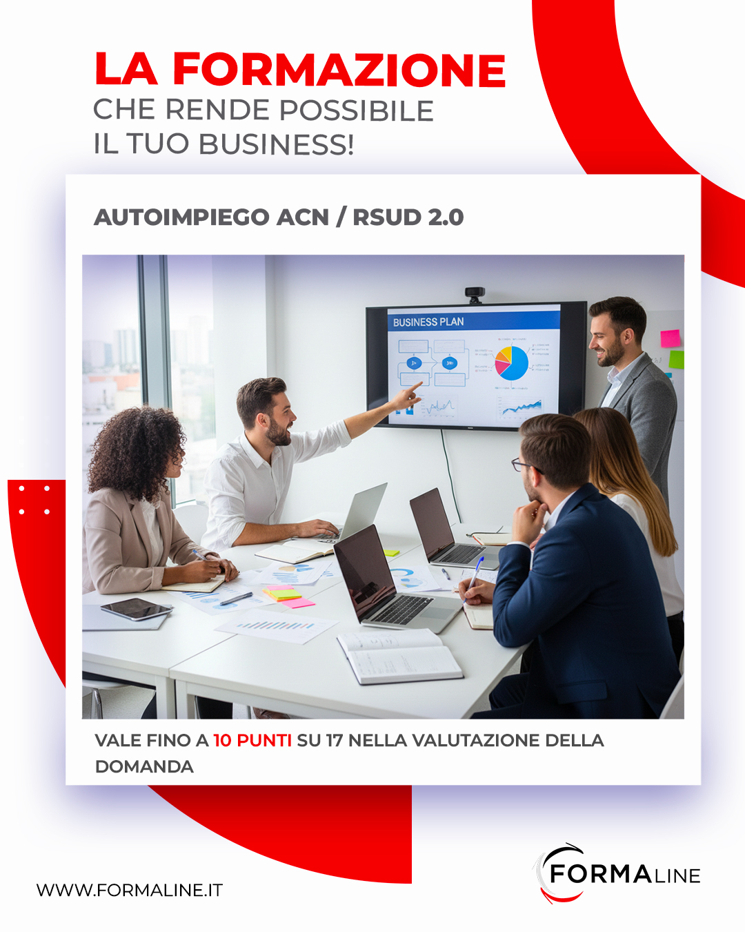Allora sei nel posto giusto al momento giusto! Formaline ti apre le porte di Autoimpiego ACN (Centro-Nord) e Resto al Sud 2.0, due strumenti governativi pensati per dare una spinta decisiva al tuo progetto imprenditoriale. E la notizia migliore? Il tuo percorso inizia con una formazione GRATUITA, online e PREMIANTE offerta da noi!